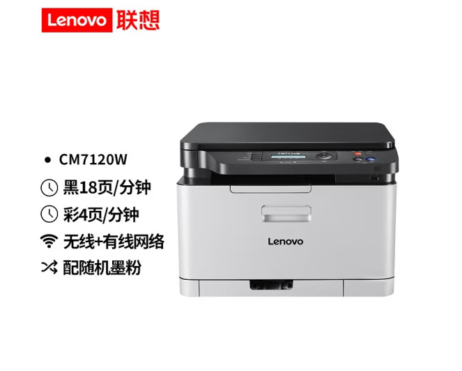 联想(Lenovo)CM7120W 彩色激光无线WiFi打印多功能一体机(打印 复印 扫描)